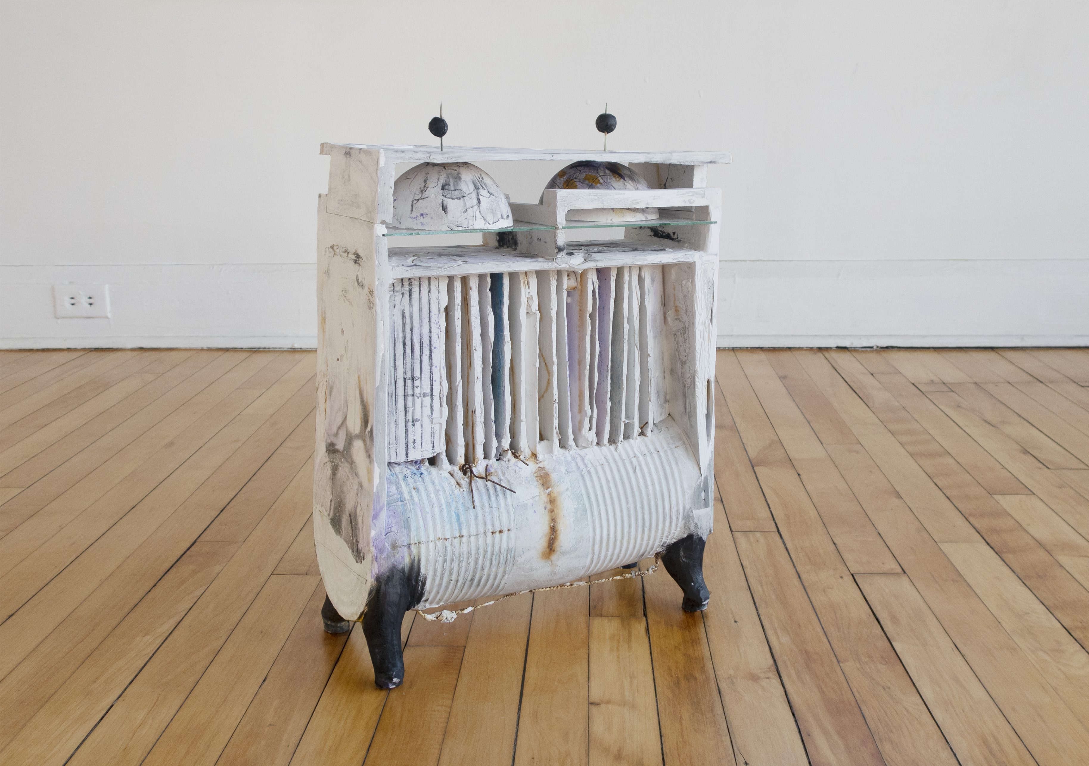 plaster, graphite, ink, pigment, toothpicks, steel wire, glass