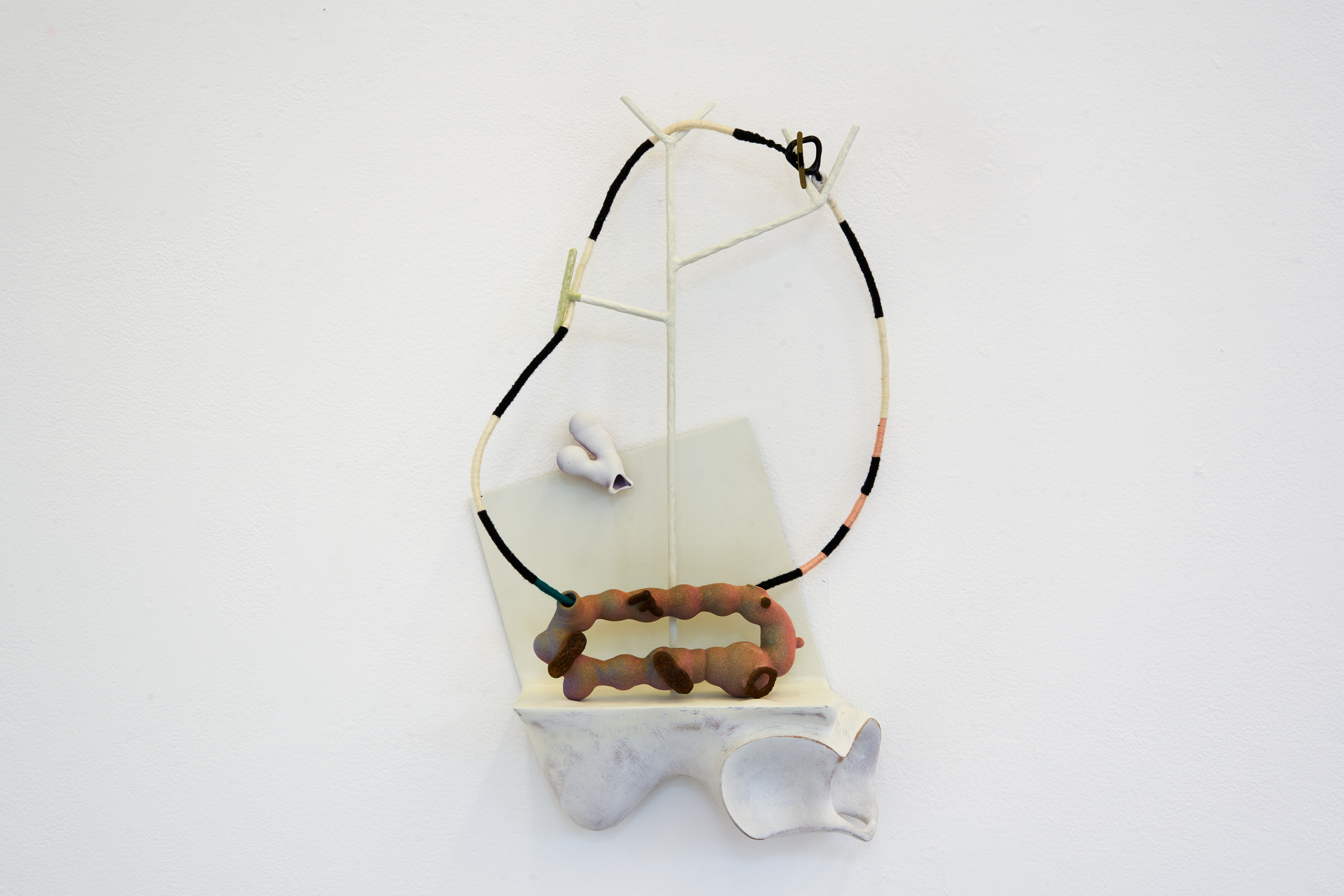 blown glass, carved mahogany, pine, cherry, cork, live oak, brass, steel, aluminum, cotton cord, thread, paint